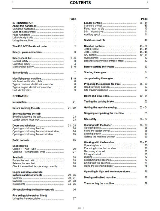 JCB 2CX BACKHOE LOADER OPERATOR MANUAL FROM SERIAL 930000 REPRINTED COMB BOUND