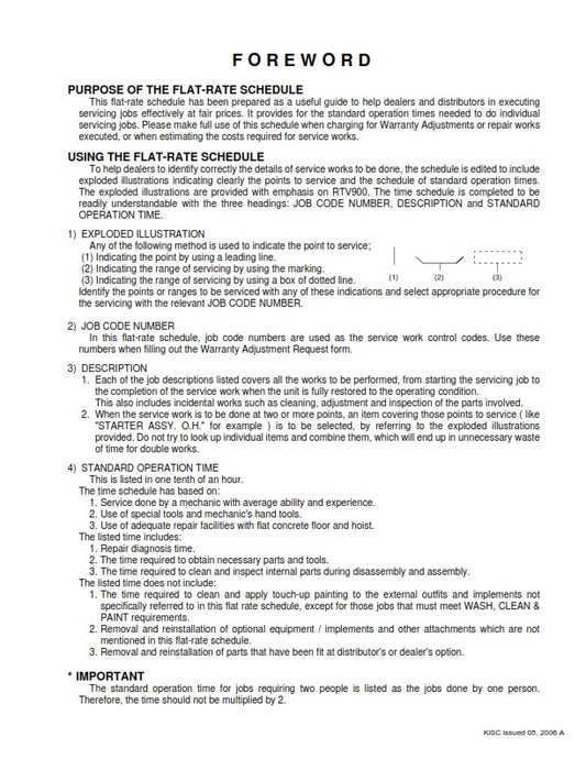 KUBOTA RTV900 FRS FLAT RATE SCHEDULE REPRINTED 2006 COMB BOUND