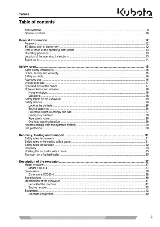 KUBOTA EXCAVATOR KX080-4 OPERATORS MANUAL APRIL 15 EDITION REPRINTED COMB BOUND