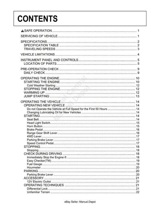 KUBOTA UTILITY VEHICLE RTV500 OPERATOR MANUAL REPRINTED 2008 EDITION