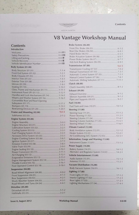 100 GSM - ASTON MARTIN V8 VANTAGE WORKSHOP MANUAL FULL COLOUR ISSUE 8 - 05 TO 13