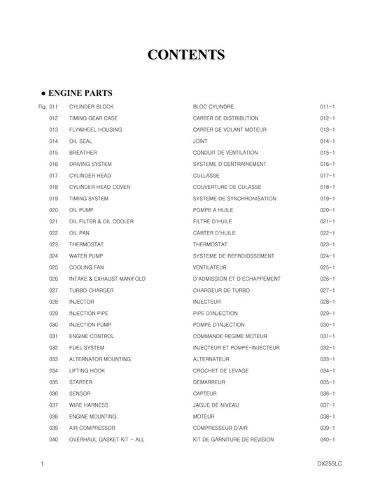 DOOSAN DX225LC PARTS MANUAL SERIAL NO. 5001 TO 5432 REPRINTED COMB BOUND 2009