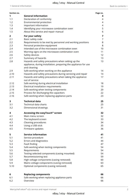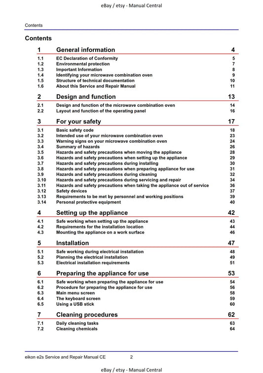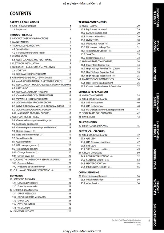 EIKON MICROWAVE COMBINATION OVEN E2S & E2S V2 - SERVICE & REPAIR MANUAL REPRINT