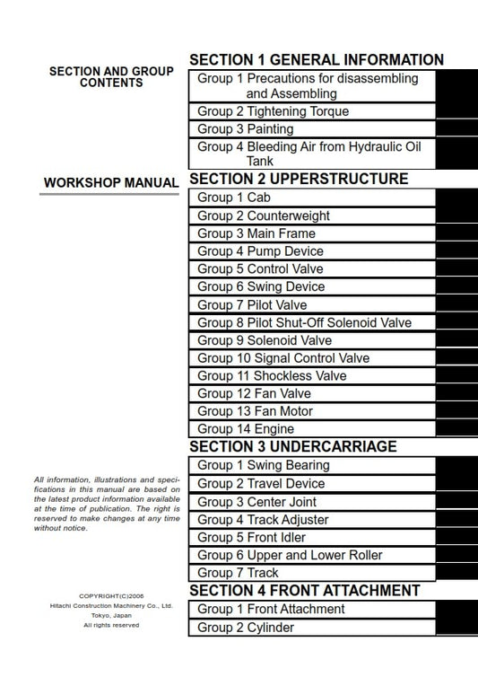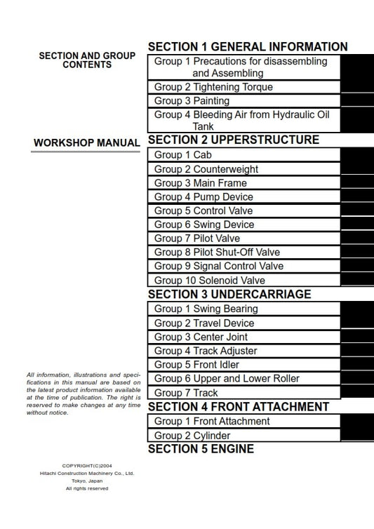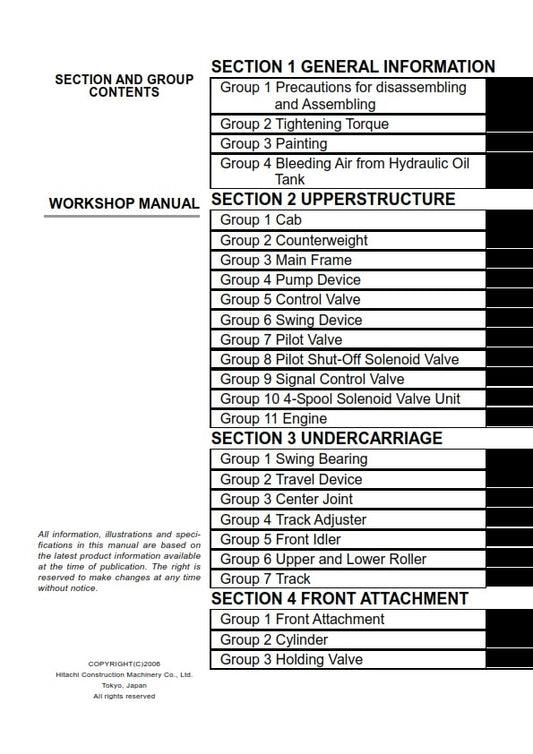 HITACHI 6BG1 TIER 2 ENGINE MANUAL REPRINTED COMB BOUND 2012 EDITION