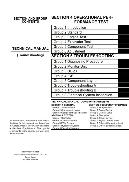 HITACHI ZAXIS 200 225 230 270 TECHNICAL TROUBLESHOOTING MANUAL REPRINTED