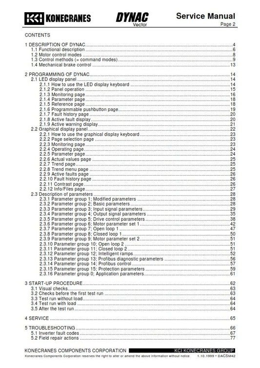 KONECRANES DYNAC VECTOR SERVICE MANUAL REPRINTED 1999