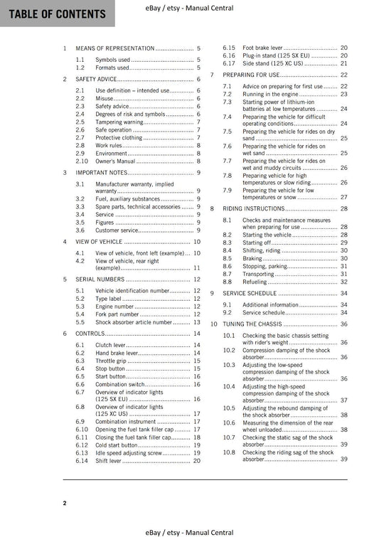 2023 OWNERS MANUAL - KTM 125 SX XC - REPRINT