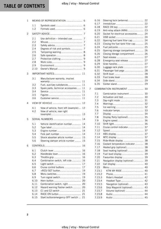 2023 OWNERS MANUAL - KTM 1290 SUPER ADVENTURE R - REPRINT