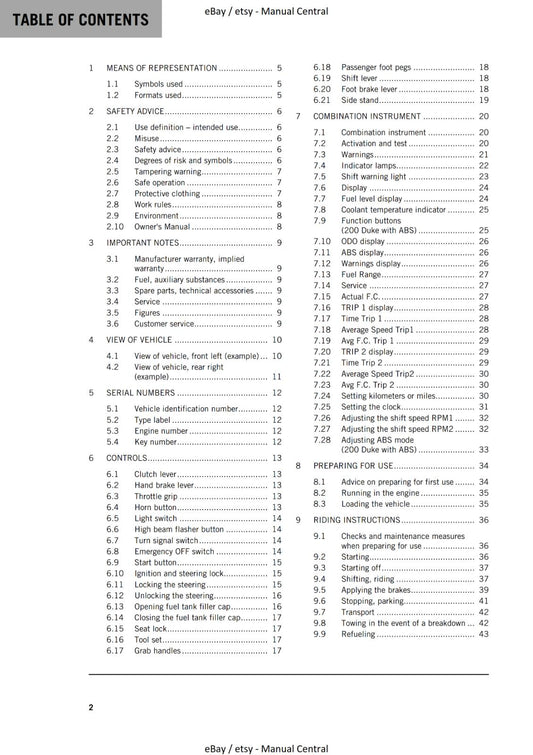 2023 OWNERS MANUAL - KTM 200 DUKE - REPRINT