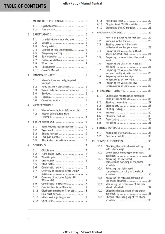 2023 OWNERS MANUAL - KTM 250 300 SX XC - REPRINT