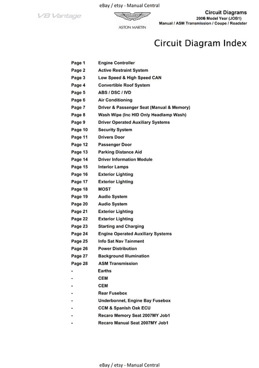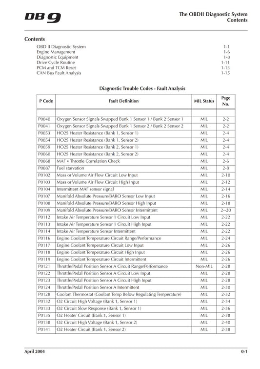 ASTON MARTIN DB9 OBD II DIAGNOSTIC MANUAL - 2004 EDITION