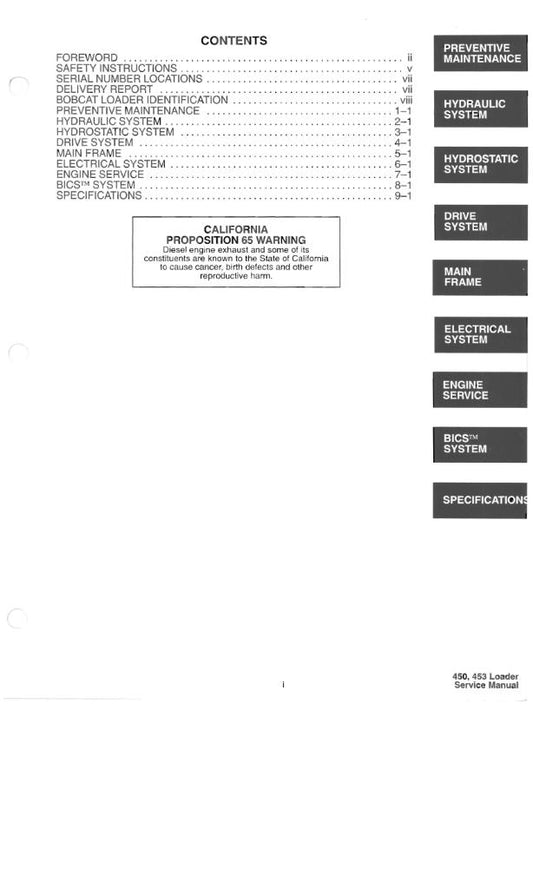 BOBCAT 450 & 453 SERVICE MANUAL REPRINTED COMB BOUND