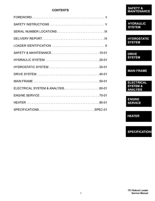 BOBCAT 751 SERVICE WORKSHOP REPAIR MANUAL REPRINTED COMB BOUND 2006