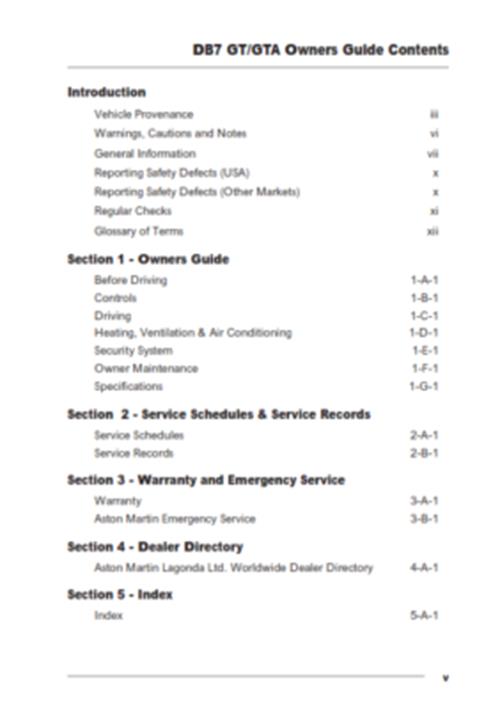 ASTON MARTIN DB7 VANTAGE PARTS & OBD II MANUAL REPRINTED