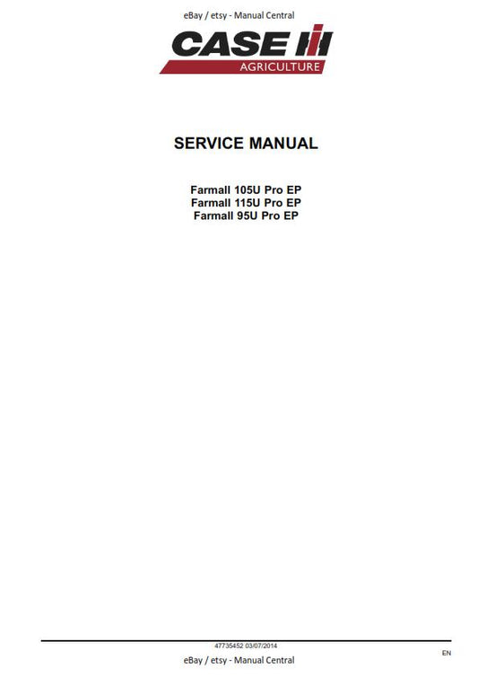 CASE TRACTOR FARMALL 95U 105U 115U WORKSHOP SERVICE REPAIR MANUAL 2014 EDITION