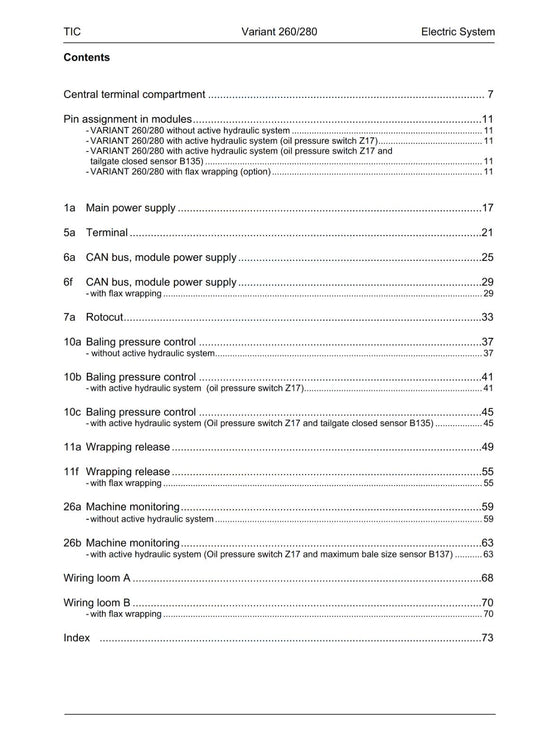 CLAAS VARIANT 260 280 TECHNICAL & HYDRAULIC SYSTEMS PRINTED COMB BOUND