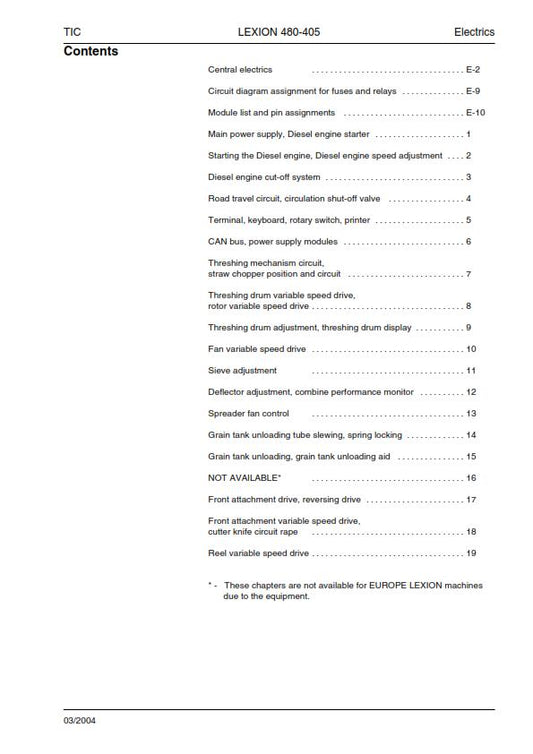 CLAAS LEXION 480 - 405 TECHNICAL ELECTRIC SYSTEMS MANUAL PRINTED COMB BOUND