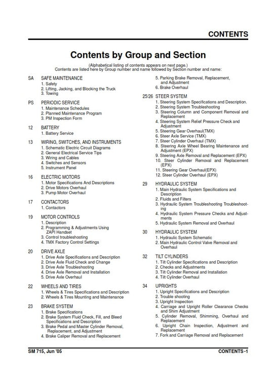 CLARK SM-715 TMX12-25 EPX16-20S SERVICE MANUAL REPRINTED COMB BOUND 2007 EDITION