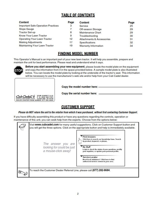 CUB CADET GARDEN TRACTOR MODEL NO 1863 1864 OPERATORS MANUAL