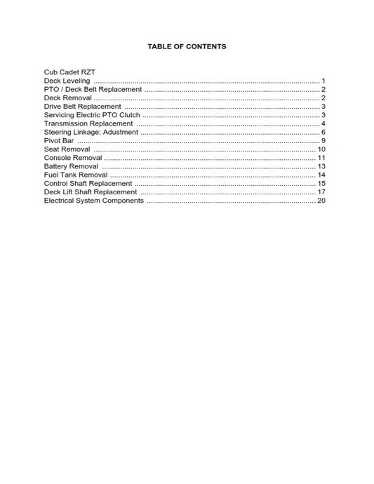 CUB CADET RZT ZERO TURN RIDER SERVICE MANUAL REPRINTED COMB BOUND IN COLOUR