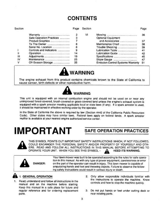 CUB CADET INTERNATIONAL ROTARY MOWER 38C 44C 50C 3-SPINDLE OPERATORS MANUAL