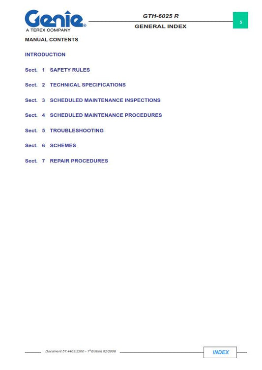 GENIE GTH-6025 R SERVICE WORKSHOP REPAIR MANUAL REPRINTED 2008 EDITION