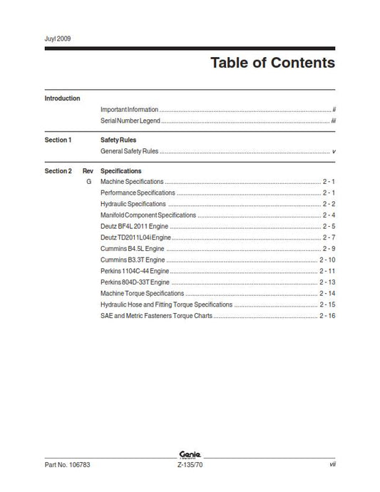 GENIE Z-135/70 SERVICE WORKSHOP REPAIR MANUAL REPRINTED JUL 2009 EDITION