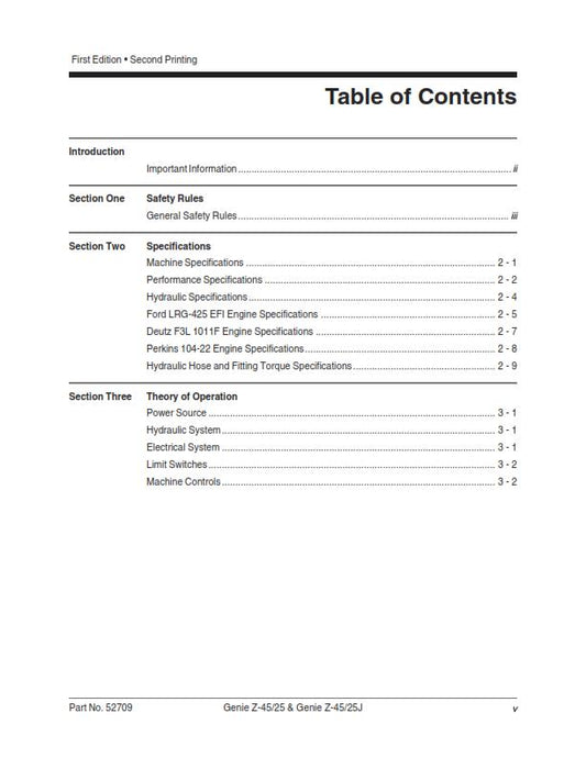 GENIE Z-45/25 Z-45/25J SERVICE WORKSHOP REPAIR MANUAL REPRINTED SEP 2000 EDITION