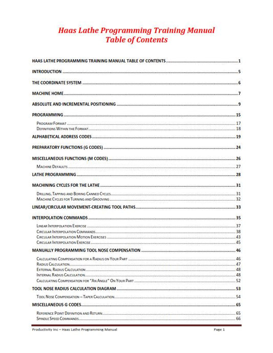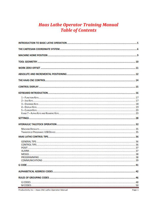 HAAS LATHE SERIES CNC LATHE PROGRAMMING TRAINING MANUAL REPRINTED COMB BOUND