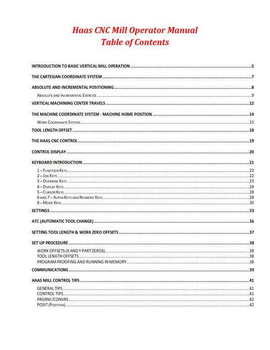 HAAS MILL SERIES CNC MILL OPERATOR TRAINING MANUAL REPRINTED COMB BOUND