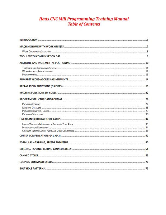 HAAS MILL SERIES CNC MILL PROGRAMMING TRAINING MANUAL REPRINTED COMB BOUND