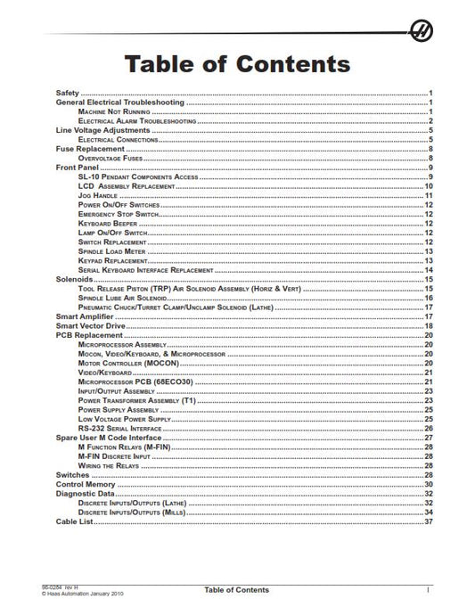 HAAS MILL & LATHE SERVICE MANUAL ELECTRICAL JAN 2010 REPRINTED COMB BOUND