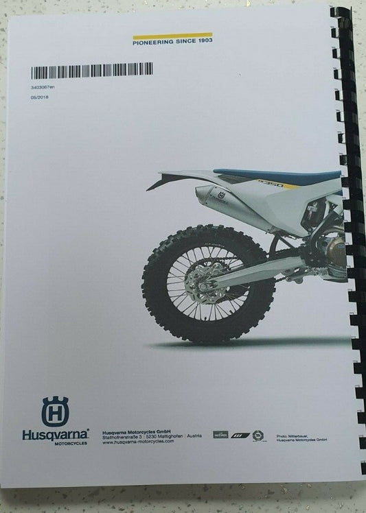 HUSQVARNA 2018 MOTORBIKE OWNER MANUALS REPRINTED COMB BOUND
