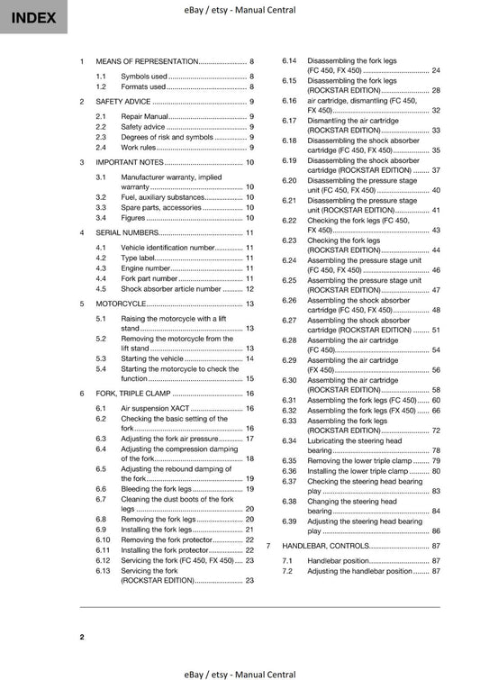 HUSQVARNA 2020 - FC FX 450 ROCKSTAR - WORKSHOP SERVICE REPAIR MANUAL REPRINTED