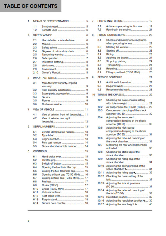 Official Husqvarna 2021 TC 50 & TC 50 Mini Owners Manual (Digital & Physical Copy)