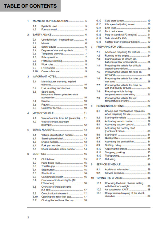 Official Husqvarna 2023 FX 450 & FC 450, Heritage & Rockstar Edition Owners Manual (Digital & Physical Copy)
