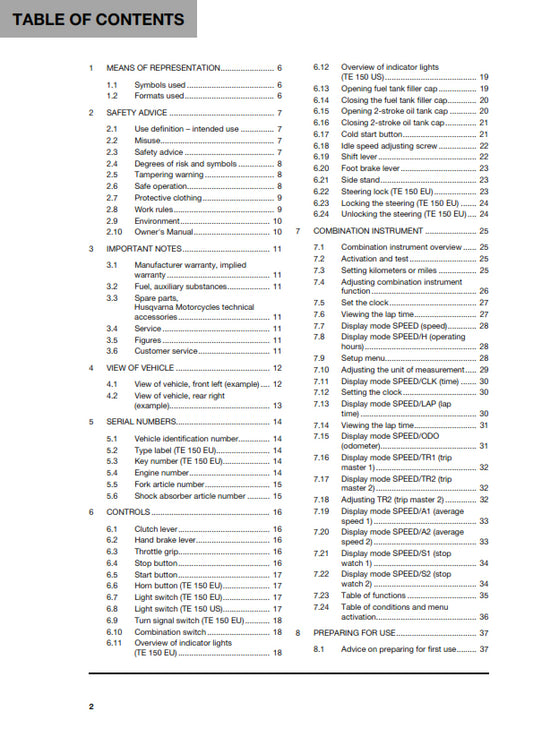 Official Husqvarna 2024 TE 150 Owners Manual (Digital & Physical Copy)