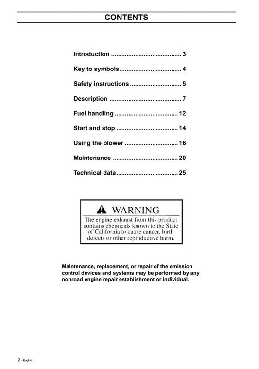 HUSQVARNA BLOWER 225B X SERIES OPERATOR MANUAL REPRINTED COMB BOUND