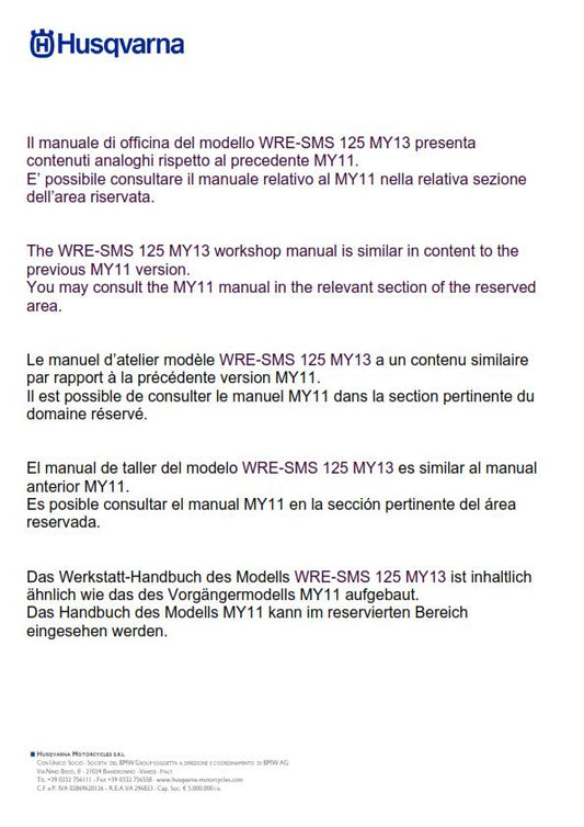 HUSQVARNA 2011-2013 WRE SMS 125 REPAIR WORKSHOP SERVICE MANUAL REPRINTED