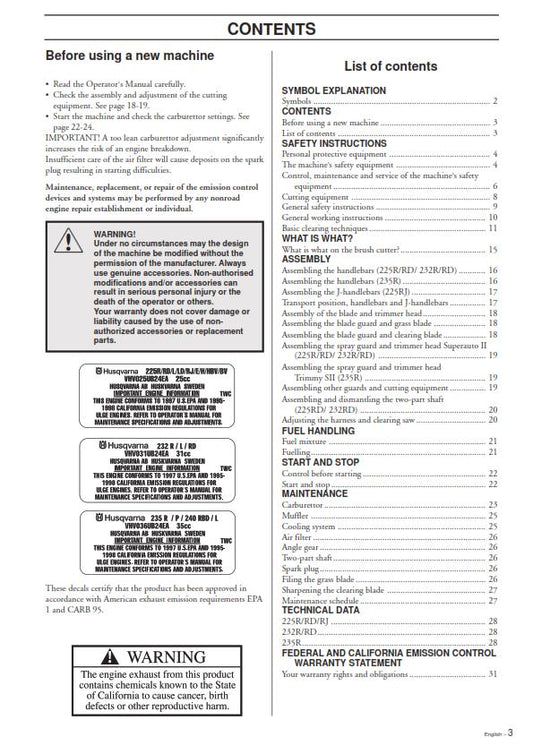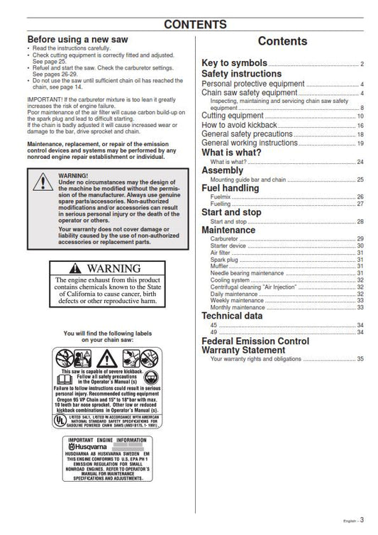 HUSQVARNA CHAINSAW 45 / 49 OPERATORS MANUAL REPRINTED
