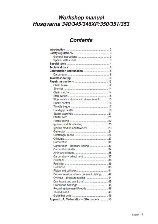 HUSQVARNA CHAINSAW 340 345 346XP 350 351 353 WORKSHOP SERVICE MANUAL REPRINTED