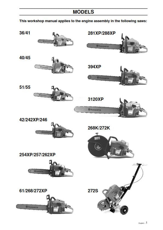 HUSQVARNA CHAINSAW 281XP 288XP 394XP 3120XP WORKSHOP MANUAL REPRINTED