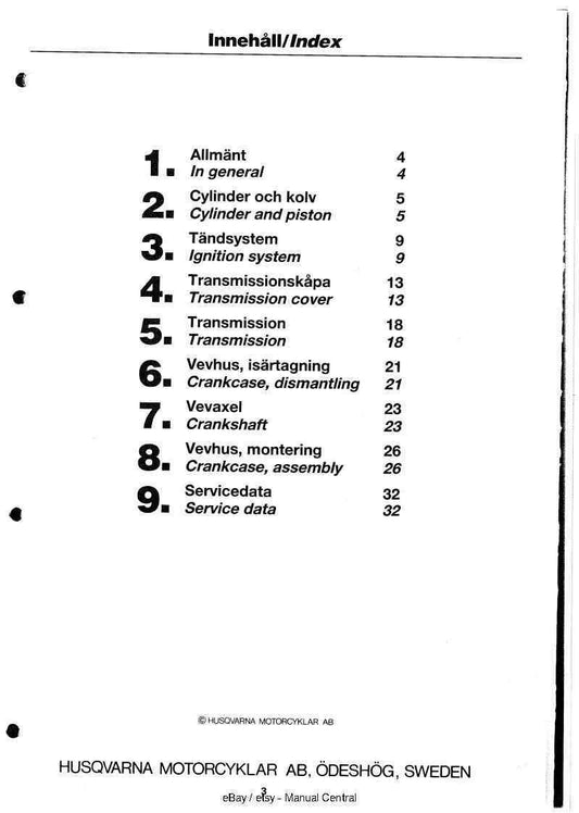 HUSQVARNA MOTORCYCLE VERKSTADSHANDBOK 4 TAKTS MOTOR 4 STROKE ENGINE WORKSHOP 86