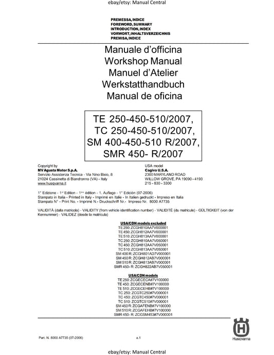 HUSQVARNA 2007 - TE TC 250 450 510 SM 400 450 510 SMR 450 Werkstatthandbuch