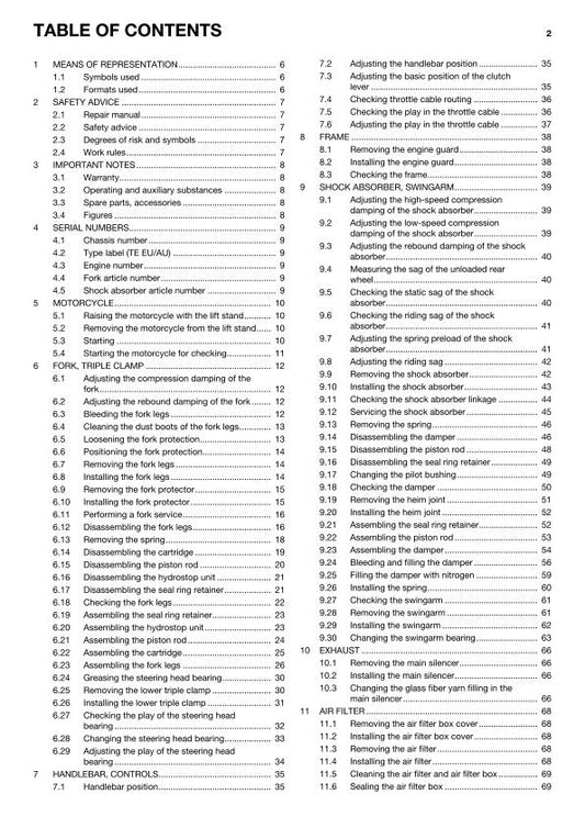 GERMAN LANGUAGE - HUSQVARNA 2024 - TE 250 300 PRO - REPARATURANLEITUNG