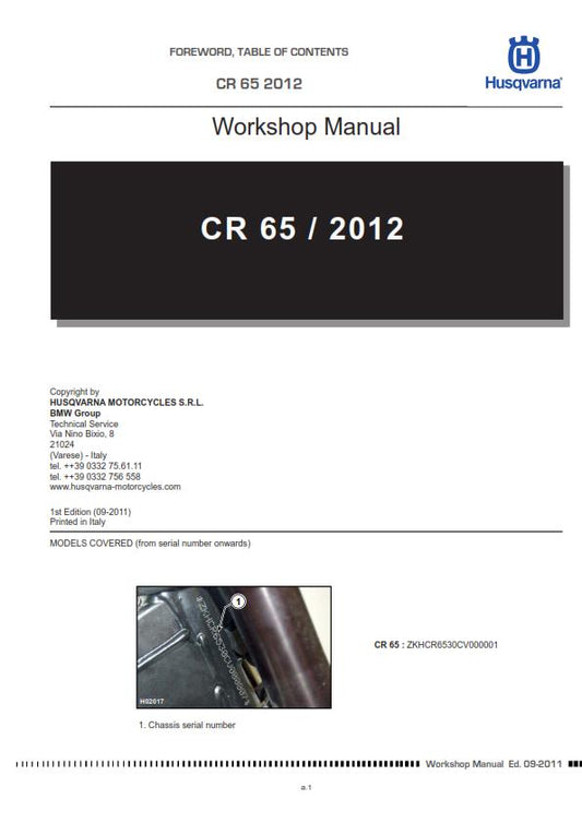 HUSQVARNA CR65 CR 65 2012 REPAIR WORKSHOP SERVICE MANUAL REPRINTED COMB BOUND