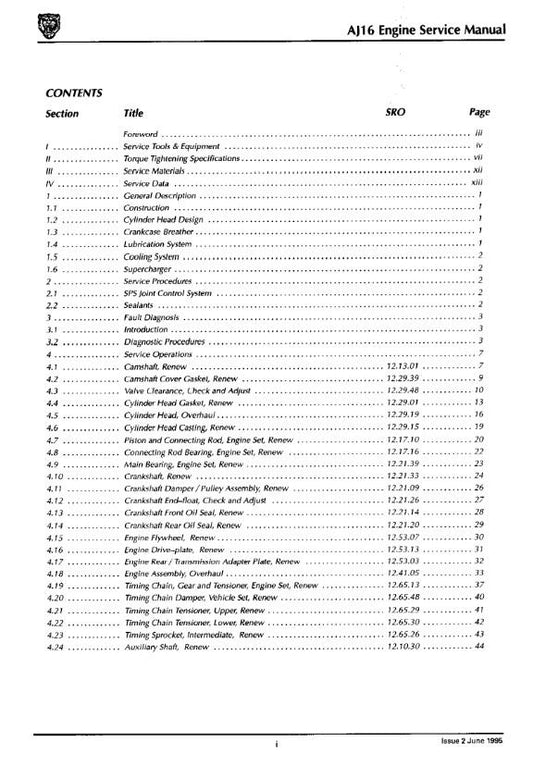 JAGUAR AJ16 ENGINE WORKSHOP SERVICE MANUAL REPRINTED COMB BOUND 1995 EDITION