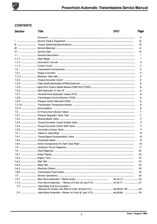 JAGUAR POWERTRAIN AUTOMATIC TRANSMISSIONS SERVICE MANUAL 1994 REPRINT