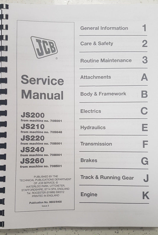 JCB JS130 JS160 SERVICE MANUAL REPRINTED COMB BOUND