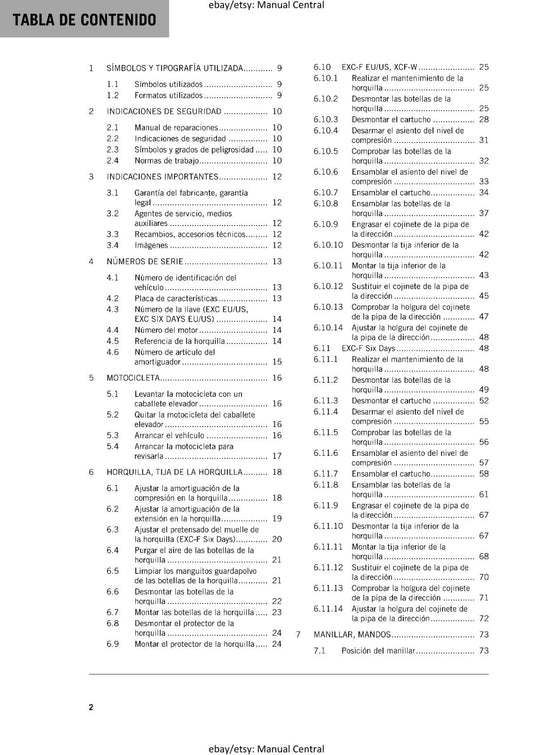 SPANISH LANGUAGE - KTM 2024 - 250 300 EXC SIX DAYS XC-W - MANUAL DE REPARACION